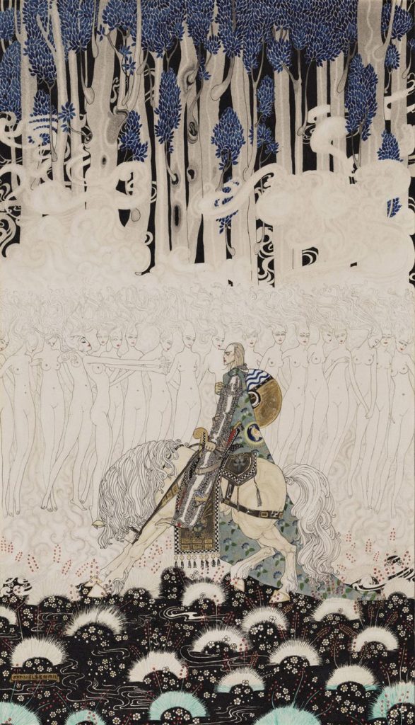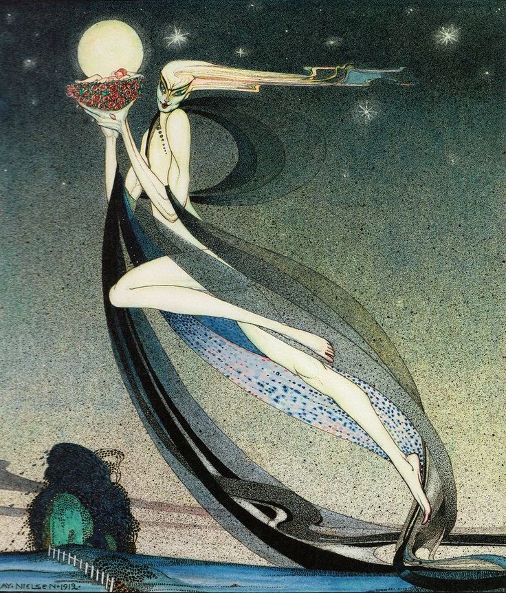 Kay Rasmus Nielsen nasceu em Copenhague em 1886, filho de dois atores — seu pai, diretor de um dos grandes teatros da cidade, sua mãe, Oda Nielsen, uma das atrizes mais célebres de sua geração. Cresceu dentro da gramática do símbolo. Estudou arte em Paris entre 1904 e 1911, onde mergulhou no Art Nouveau em seu apogeu, enquanto absorvia simultaneamente a estética dos ukiyo-e japoneses, as miniaturas persas e a tradição mitológica nórdica em que havia sido formado desde criança. O resultado foi um estilo visual que nenhum de seus contemporâneos conseguiu imitar — mais alongado que Arthur Rackham, mais austero que Edmund Dulac, mais carregado simbolicamente do que qualquer ilustrador de sua época.